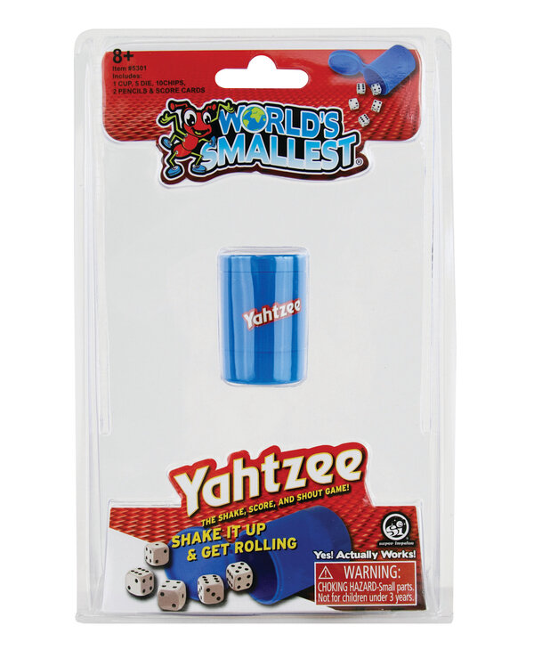 - Get ready to “Shake, Score, and Shout” with the World’s Smallest Yahtzee game! This tiny twist on the beloved classic brings all the excitement and strategy of the full-sized version into a pocket-sized package.