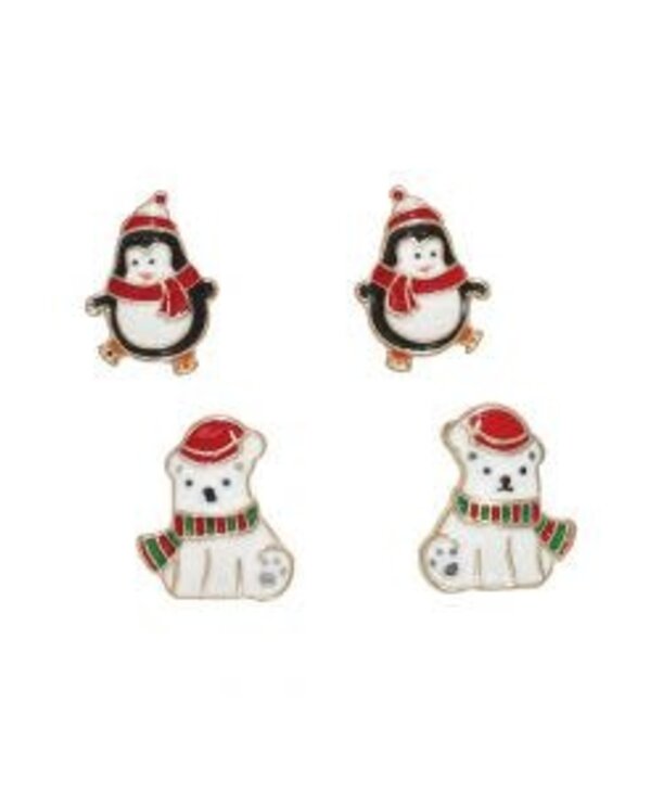 Celebrate the holiday season with this adorable winter-themed earring set, featuring penguin and polar bear designs dressed in cozy scarves and hats. Perfect for adding a fun and festive touch to any outfit!